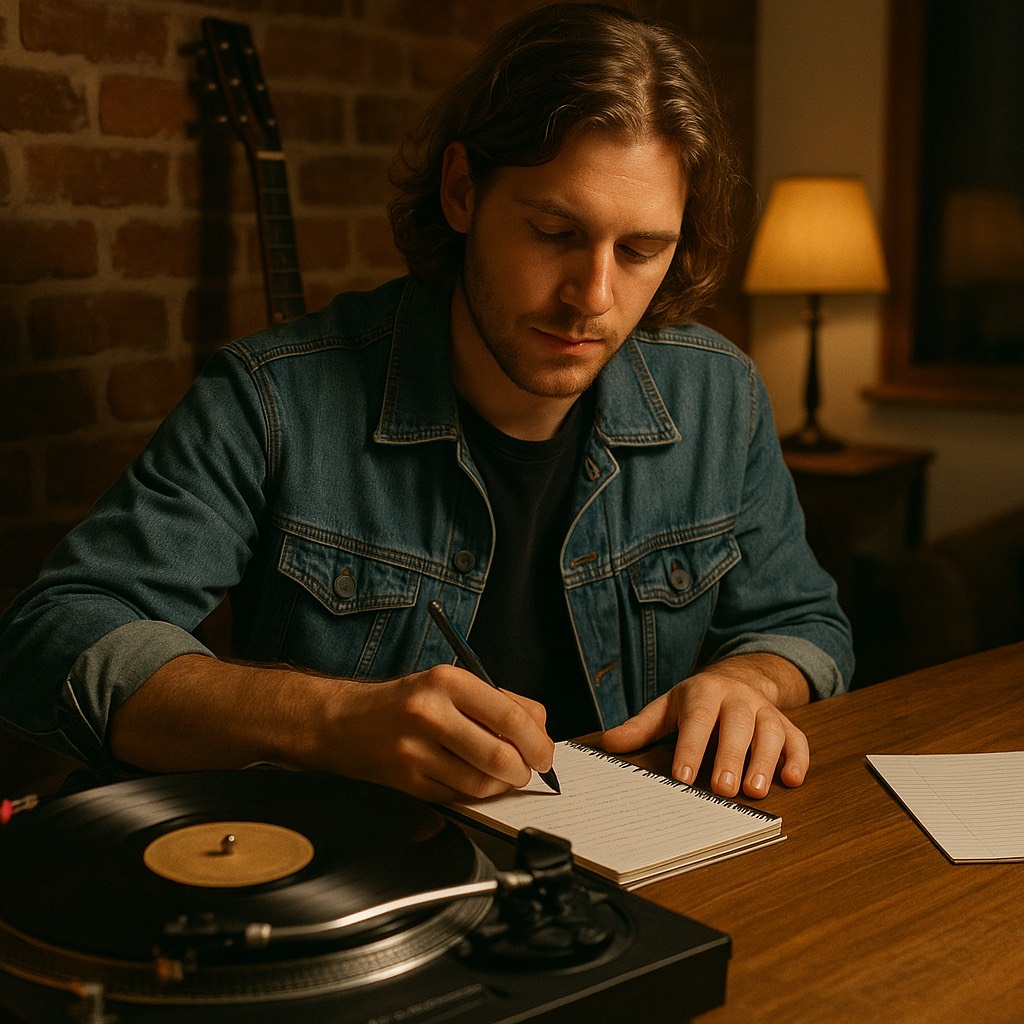 “Needle & a Notepad” – An acoustic-pop song with rhythmic guitar, light beatboxing, and heartfelt lyrics, The song tells the story of Andrew from the Wolfpack, who spins records and writes songs, weaving each friend’s story into his music, Each verse highlights a different member of the group — Andrew, Face, Boadie, Valentino, and Casey (Chase) — with a smooth, emotional tone, a catchy sing-along chorus, and warm vocal delivery, Vibe: Cool, confident, and soulful with a Mediterranean flair and friendship theme, Structure: Intro – Verse (Andrew) – Chorus – Verse (Face) – Verse (Boadie) – Verse (Valentino) – Verse (Casey) – Bridge – Final Chorus – Outro, Instruments: Acoustic guitar, light percussion, looped beatbox, soft bass, subtle harmonies