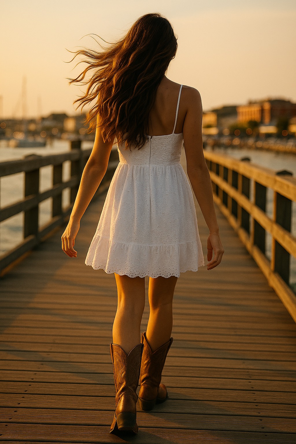 Style: Romantic, flirty, warm, nighttime beach vibe