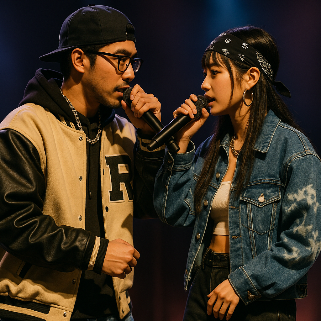 Kawaii Hip Hop, Night Pop, Dream Pop, Kawaii Future Bass, Pop Rap, BPM: 118, bouncy syncopated groove, warm Rhodes piano, playful 8-bit (chiptune) accents, deep clean sub bass, glitchy vocal chops, intimate atmosphere, moonlit atmosphere, Vocal Style: kawaii hip hop girl, high-pitched, ultra-breathy female vocalist, gentle delivery, airy whisper, soft rasp, playful lilting, sweet melodic tone, streetwise ease, euphoric sparkle, dreamy intimacy, playful energy, vocal effects: soft plate reverb, subtle syncopated delay, high-shelf eq for airy texture, lightly autotune melodic lines, Structure: starts intimate and soft, builds to a playful chorus, then explodes into a chaotic metalcore drop after the quiet bridge
