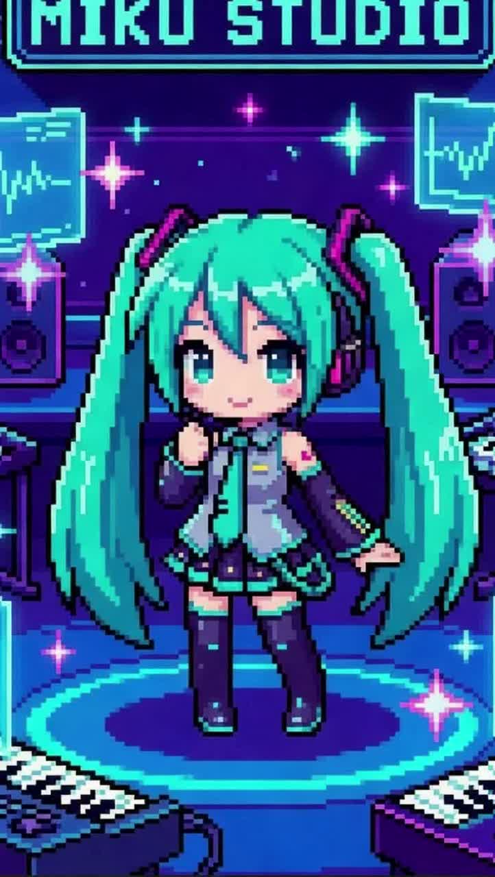 Up-tempo chiptune pop, bright and energetic, female synthetic vocal, high-pitched, Hatsune Miku–like tone, fast tempo (140–170 BPM), 8-bit leads and arpeggios, punchy chiptune bass, retro game sound aesthetic, cute but powerful, futuristic and playful, ‑fingersnap