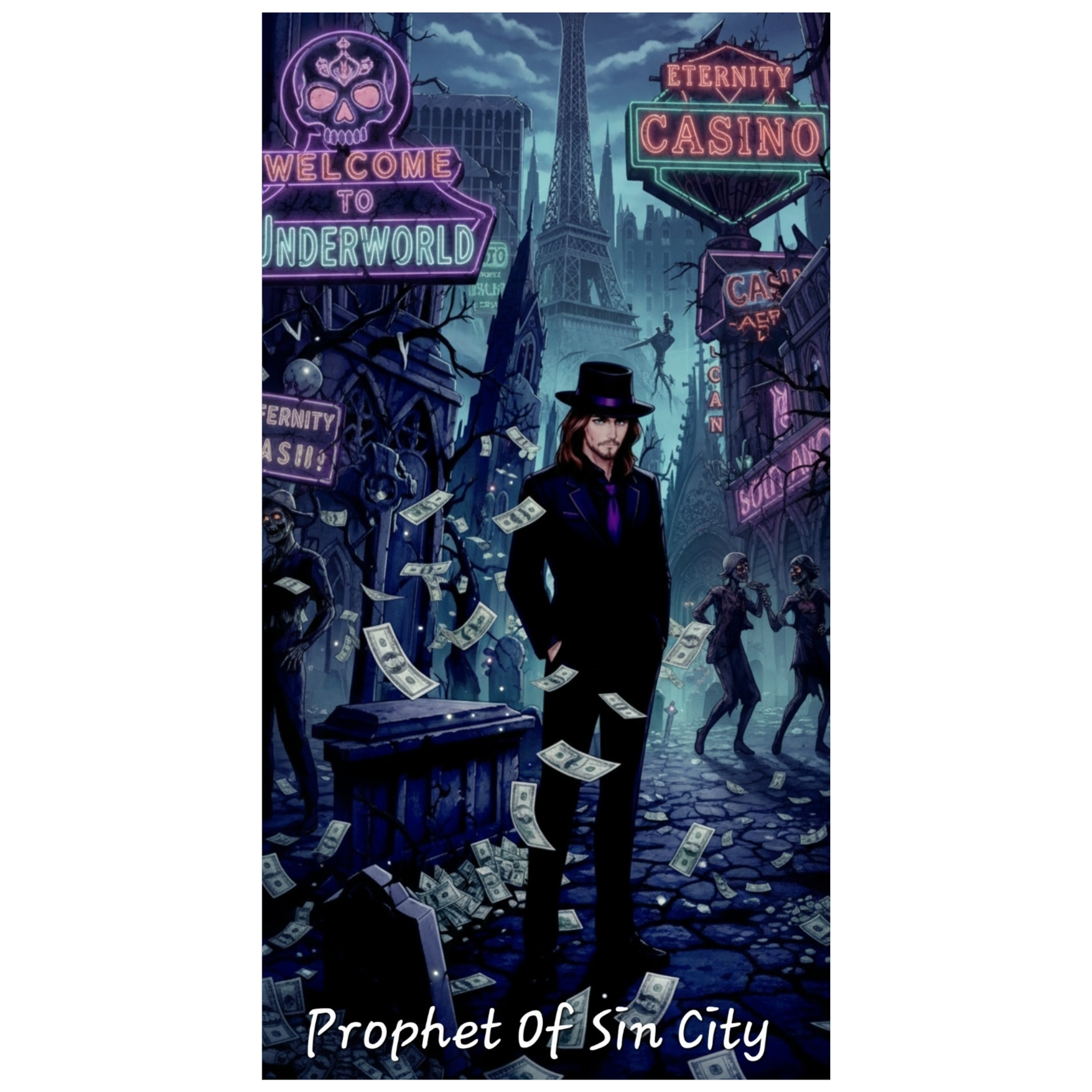“Take the rhythm and tempo of a 90s cartoon intro theme — playful 4/4 bounce around 325 BPM — but filter it through a dark carnival aesthetic, Replace bells and guitars with detuned celesta, upright bass, and echoing drums, Layer whispery harmonies and baritone gospel backing, It should sound like Toyland after death, joyous