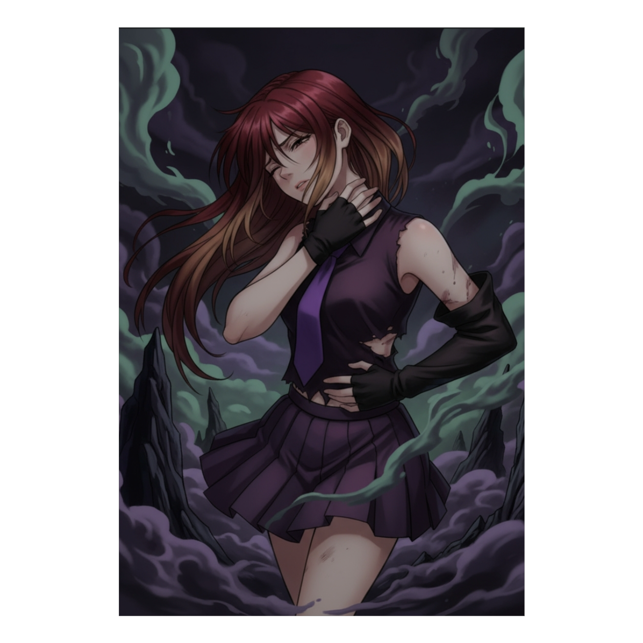 dark, gospel, throaty smoky FEMALE voice, Rap/ fast metal, angry, frustrated, deep growls, seductive, 16 beat rythem fast violin