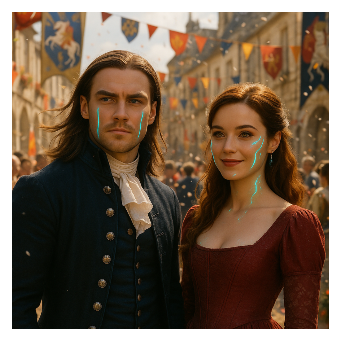 A sophisticated and cinematic fusion of Baroque Pop/Chamber Pop and modern Indie Pop, The mood is nostalgic, epic, and bittersweetly celebratory, The arrangement blends classical and modern instruments: a driving Indie Pop drum machine beat and a melodic bassline sit alongside an orchestral string section (violins, cello) and a prominent harpsichord (cravo) playing melodic motifs, Ethereal Dream Pop synth pads add atmospheric texture, The lead is a clear and emotional female vocal in French, telling a personal story with strength and vulnerability, The production is rich and layered, with a cinematic, grand feel, at a mid-tempo 115-125 BPM