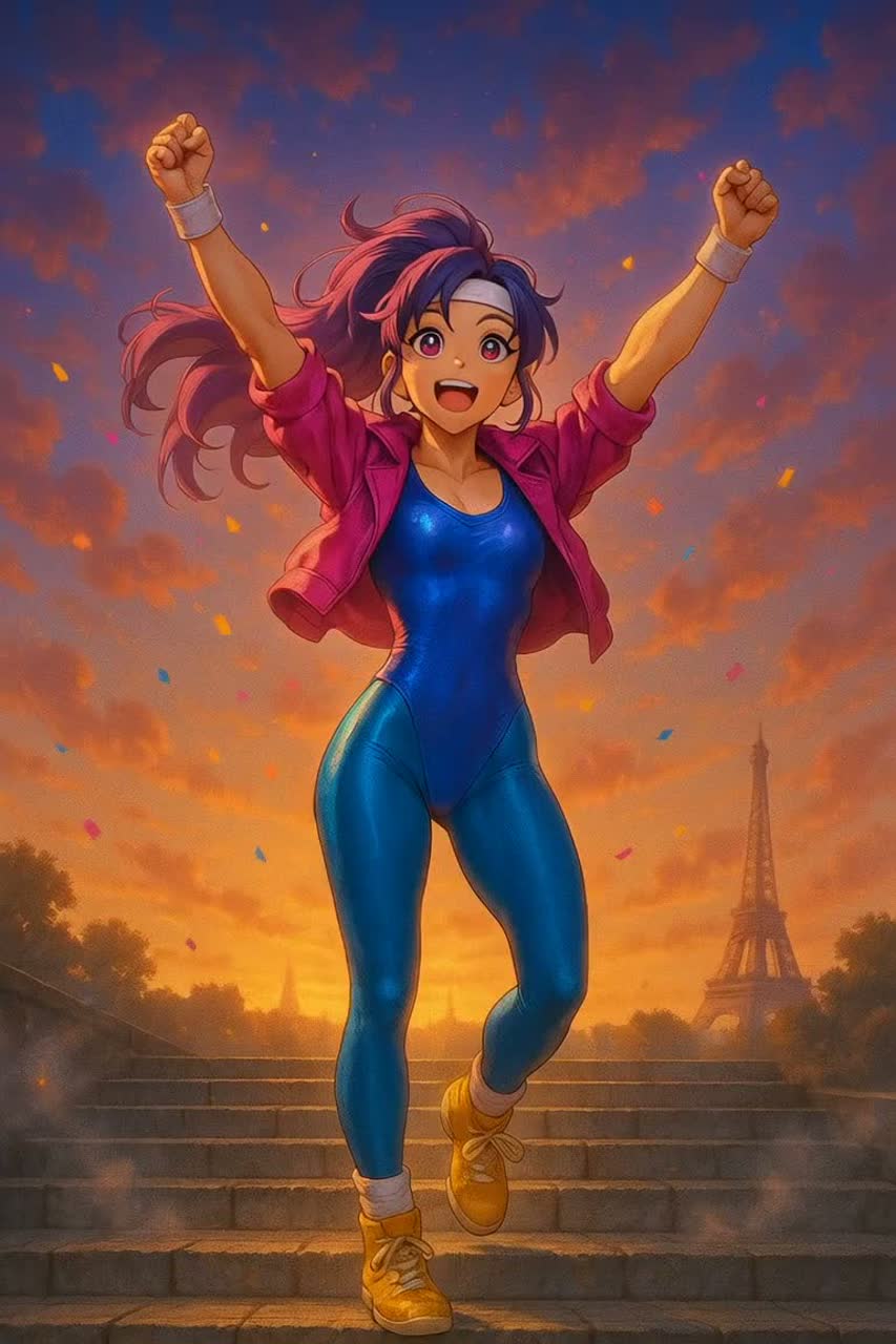 French Disco, French Nu-Disco, French Electro-Pop, Dreamy 80s Groove, Fast 80s Workout Pop, Aerobic Dance Anthem, 80s Fitness Energy, Motivational Female Vocals, Playful French Vocals, Catchy Chant Hook, Hypnotic Chant Hook, Crowd Chant FX, Funky Rhythm Guitar, Disco Handclaps, Punchy Analog Bass, Dynamic Disco Beat, Anthemic Synth Brass, Bright Synth Layers, Driving Workout Bassline, Marching Drum FX, Motivational Coach Voice, Power Pop Chorus, Short Breath Breaks, Layered Crowd Vocals, Energetic Cardio Groove, Stadium Echo FX, Cheering Crowd FX, Warm Synth Outro, Energetic 135 BPM, Key: A minor