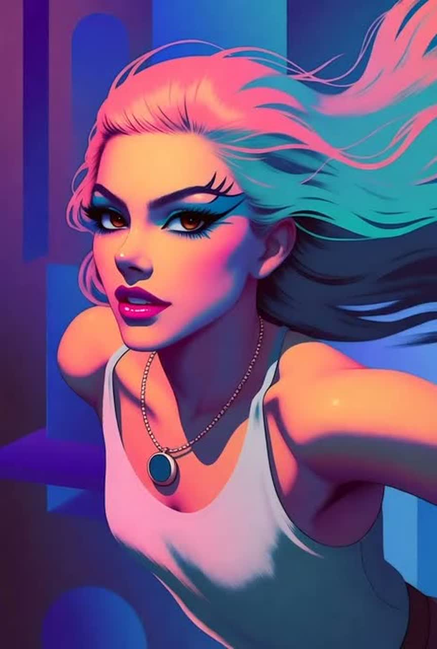 Punchy 80s electronic drums and lush pads, quickly joined by a driving four-on-the-floor beat and a deep, funky bassline, Bright, layered synth melodies weave through dynamic electro textures, while playful, vivid atmospheres frame powerful, energetic female vocals