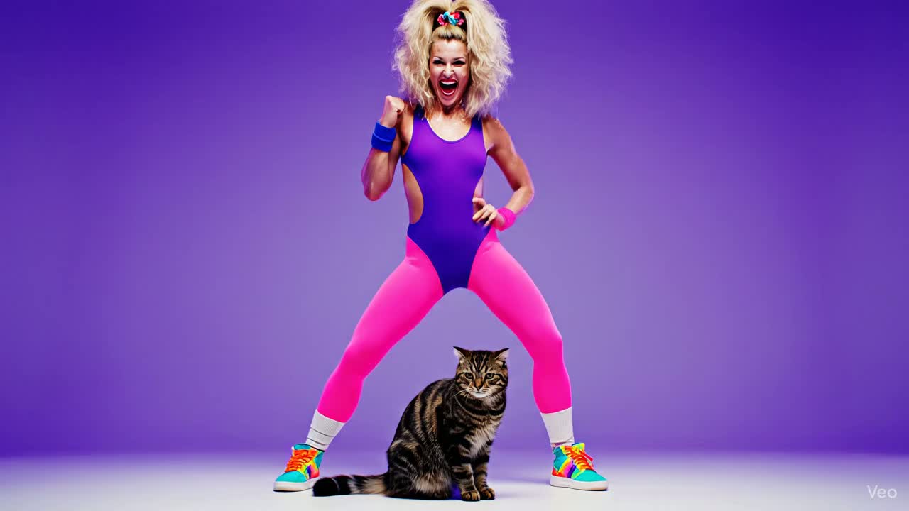 Retro-futuristic 80s synth workout anthem with comedic kung-fu theater vibes, Funky slap bass, VHS synth leads, energetic disco drums, Over-the-top theatrical vocals with both English and Japanese lines, Tempo ~160 BPM, Add dramatic shouts, action SFX (HIYAH!, impact hits), and exaggerated workout commands, Think vintage exercise tape + martial arts infomercial, Genre blend: synthpop ร funk rock ร comedic art-core, Include chant-style choruses and crowd chants, Use layered female vocals or Vocaloid style, Mix absurd physiological references (dopamine, endorphins, mitochondria) with motivational punchlines, Goofy, fast-paced, heroic, and sweaty as hell, Final chorus should explode like an 80s training montage climax