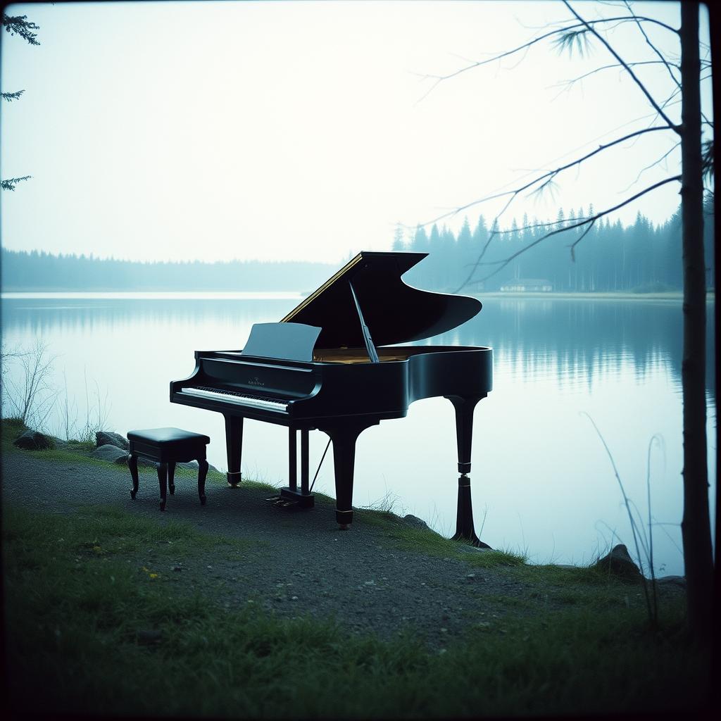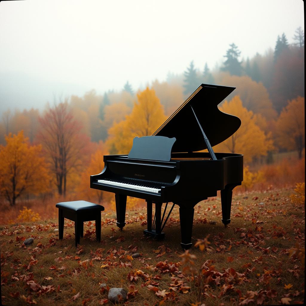 Dark emotional only acoustic piano, Locrian and phrygian scales, Delicate dynamics to evoke a journey of feelings, reflecting dynamic emotional landscapes, the arrangement uses sparse piano chords, acoustic, with touches of dissonance; the melody moves from calm to excitement to depression to hope, minimalistic