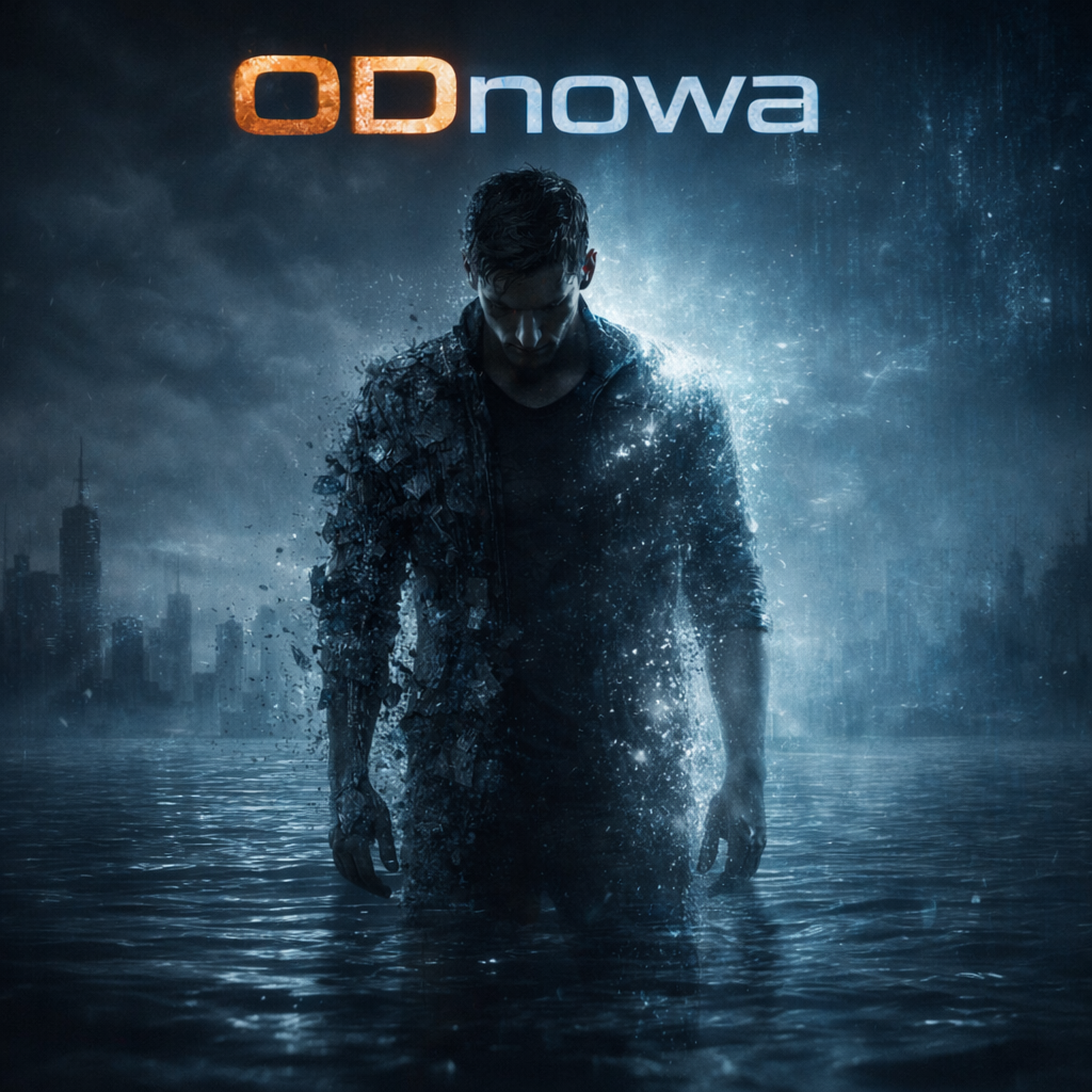 ambient cinematic electronic rock; pulsating, warm analog sub-bass, slightly overdriven; delicate, spacious drums, soft kick, occasional low toms, subtle hi-hats, reverse hits; wide, modulated pads, gradually opening low-pass filter, shimmer on top; lightly rising arpeggio with low-pass filter; ambient electric guitar, delay and shimmer, phrases in low and mid register, no distortion; FX - white noise, glitchy sounds, distant vocal chops, echo; male vocal low, soft, close to microphone, reverb and delay; woman choirs; melancholic, spacious, cinematic atmosphere, gradually rising energy in the second part, introspection and subtle awakening; cinematic effects, ambient echo and shimmer