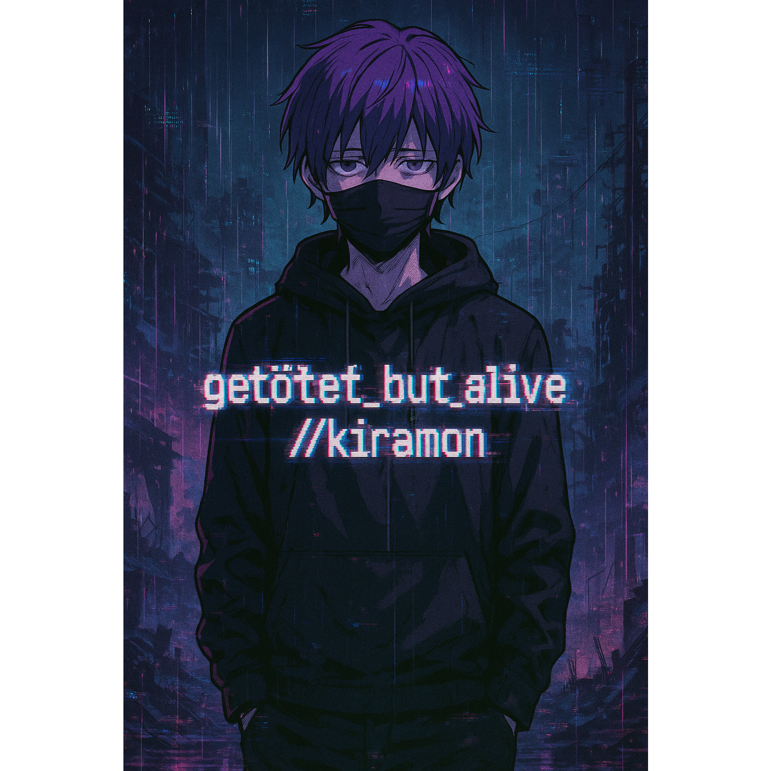 German glitch trap, mid tempo, dark and emotional textures, distorted 808s, broken piano notes, synths, glitch FX, intense percussions, abrupt transitions, poetic yet hostile, Inspired by Kiramon, ‑no sreaming
