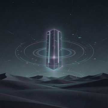 A cinematic electronic track blending ambient textures with industrial breakbeat elements, The song features a deep, resonant male spoken-word vocal with a philosophical tone, processed with light reverb, The instrumentation consists of a pulsing sub-bass, atmospheric synth pads, and a complex, syncopated drum pattern that enters mid-track, characterized by crisp snares and metallic percussion hits, The harmonic structure is centered around a dark, minor-key progression, Production techniques include heavy use of side-chain compression, glitchy sound effects, and sweeping filter automation that creates a sense of tension and release, The tempo is approximately 80 BPM, maintaining a steady, driving energy throughout the arrangement