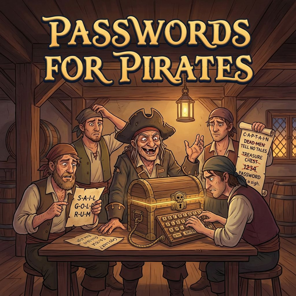 Up-tempo sea shanty propulsion, deck-stomp rhythmic pulse, angular New Wave art-pop energy, bright jangly 12-string guitars, tight percussive downstrokes, melodic counter-moving basslines, punchy snare with crisp hi-hat drive, chant-led call-and-response hooks, clever satirical vocal delivery, slightly manic precision, nautical cadence without folk instrumentation, dry articulate verses, subtly widened harmonized choruses, sharp minimal gang vocals, syncopated clipped spelling sections, crisp modern indie mix, tight low end, forward midrange presence, hook-dominant structure, energetic bounce with maritime swagger, ‑Accordion, ‑tin whistle, ‑fiddle, ‑acoustic mandolin, ‑cinematic orchestral swells, ‑distorted heavy metal guitars, ‑slow drone, ‑atmospheric reverb, ‑bluesy vocal slides, ‑pirate caricatures, ‑"yo-ho-ho" clichés, ‑muddy low-end, ‑garage rock fuzz