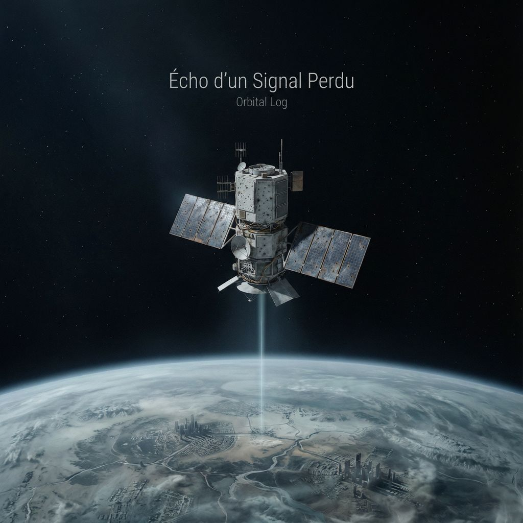 Cold orbital surveillance, space-faring AI perspective, near-silent intro with technological ambience, cosmic isolation, post-human observation, cinematic sci-fi electro, slow system awakening, synthwave groove emerges gradually, mid-tempo mechanical pulse, restrained industrial electro, modern aggrotech influence (minimal), EBM-adjacent structure, heavy sub introduced late, wide empty stereo field, controlled distortion, metallic percussion details, emotionally detached male vocal, French lyrics, dystopian future aftermath, dead planet observer, tension over release, systems persist after humanity