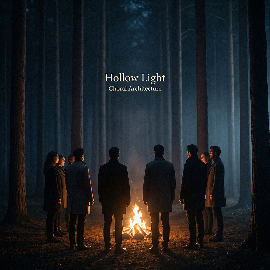 Contemporary chamber choir in evolving harmonic architecture, text-forward SATB with divisi expansion, consonant-to-cluster destabilization arc, suspended tonal center, slow dynamic bloom, staggered polyphony, exposed breath textures, minimal vibrato, cathedral-dry intimacy, widening spatial voicing, unresolved cadential language, emotional lucidity without full resolution, harmonic erosion across repetitions, acoustic realism, no instrumental support