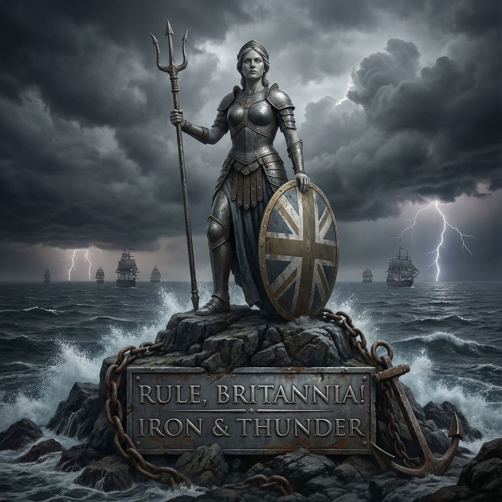 Neoclassical power metal, symphonic metal, baroque metal, folk metal accents, heroic maritime anthem, galloping tempo, male lead vocal, massive mixed choir, harpsichord riffs, distorted guitars, orchestral strings, brass fanfares, naval snare and timpani, sea shanty pulse, cinematic dynamics, martial rhythm, epic anthem structure, wide stereo, modern v5 mastering, clear low end, dramatic crescendos, triumphant tone