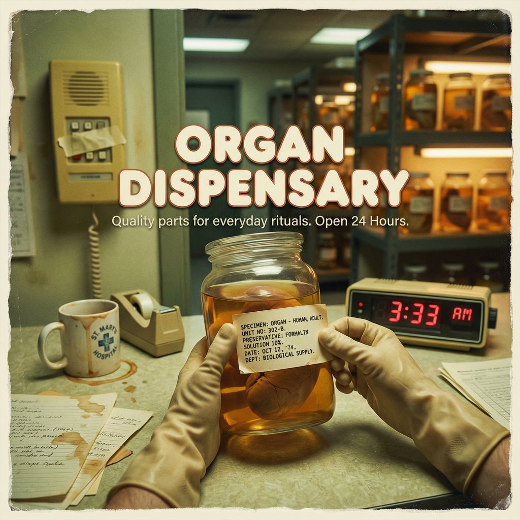 Pipe organ, monumental pipe organ, cathedral-scale organ, organ as primary instrument, stoner reggae, dub reggae, slow laid-back groove, relaxed offbeat rhythm, deep reggae bass, minimal percussion, warm unsettling calm, late-night tired mood, conversational male vocal, detached narration, no horror, no climax, unresolved ending, analog warmth, natural reverb
