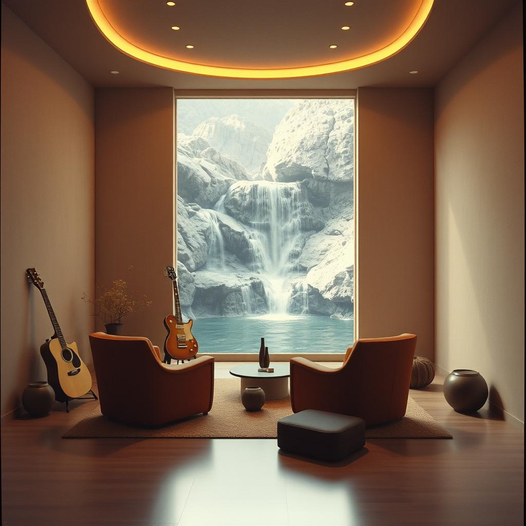 This track is total uptown Zen Solfeggio Luxury Opening with lush modular synth drones evoking ancient temples, drenched Fender acoustic guitar in spacious reverb, and subtle Solfeggio frequency layers, the track fuses sci-fi electronica and ambient world textures, Sparse mantra-like Roland keys floats in the distant mix, while hand percussion, rainmaker, and evolving pads provide a hypnotic, immersive bed, Shifting at a slow 50–55 bpm, gentle cymbals and ethereal effects build uplifting, deeply relaxing yoga flow, Soft bass beats that are muted high hats are open and closed, no deep beats