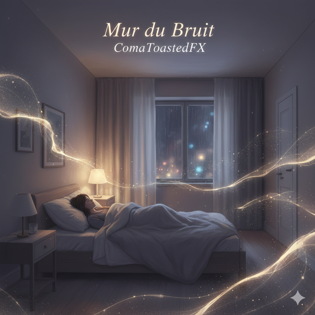 intimate close-mic, airy pads, minimal harmony changes, chorus supported by simple piano and upright bass, lo-fi warmth, dreamy french chanson meets ambient noise wall; slow 3/4 groove with brushed drums, distant tape hiss and household foley loops as texture, soft male vocals, hypnotic repetition for bedtime calm, noise, ambient, sleep, chanson, reverb tail grows toward the end