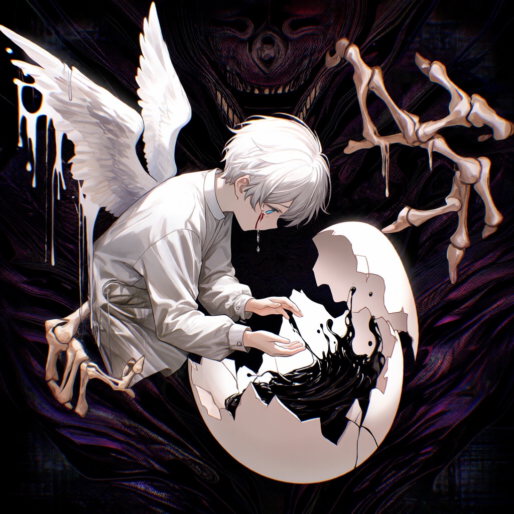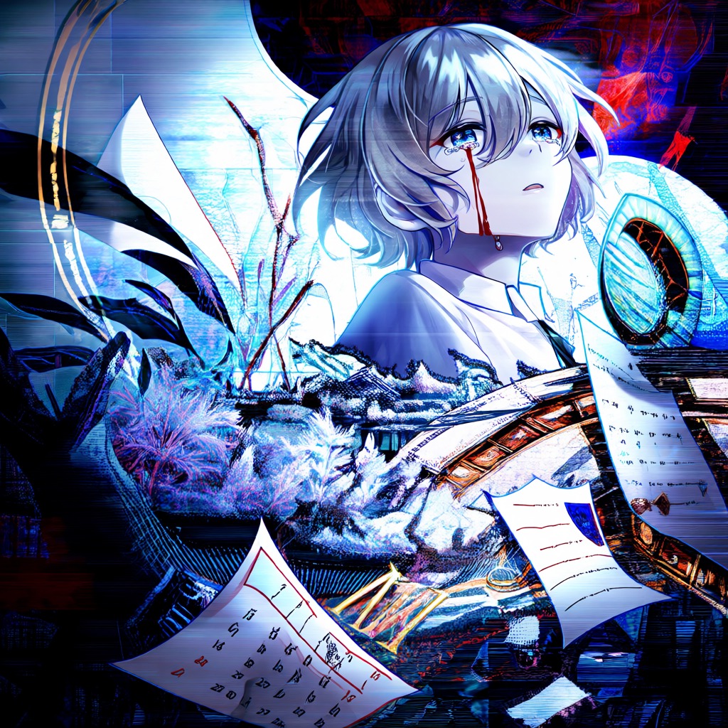 Acid Techno, Electropop, Bubblegum Pop, Indie, Hyper Vocaloid, Game soundtrack, Japanese style, innocent dark fairy tale, Aggressive, cute, spooky, playful, dreamy, and addictive, edgy, and catchy rhythms and melodies, I feel anxious, 16-beat rhythms, minor chords, changing keys and BPMs, and frenzied yet delicate vocals