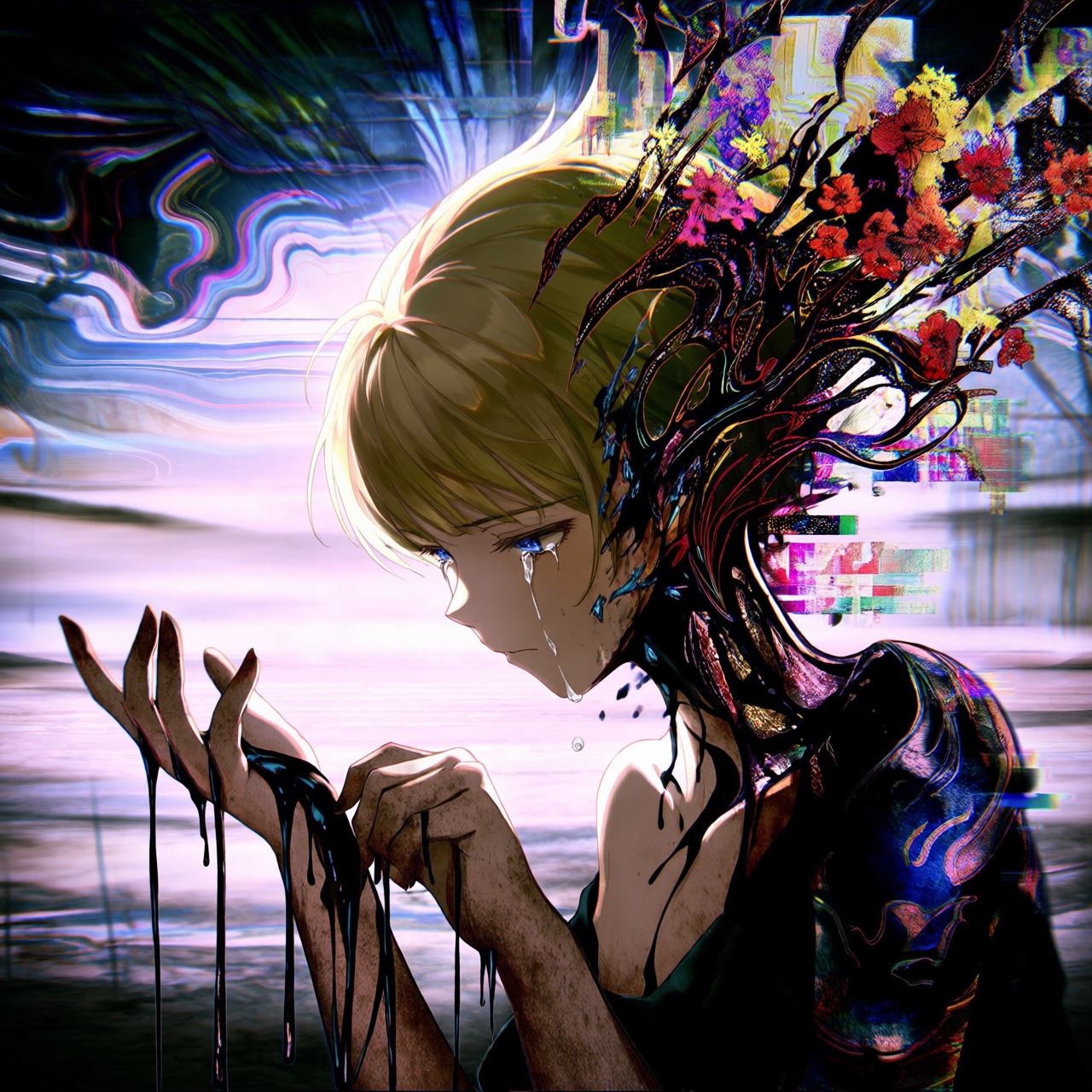 electropop, anthemic techno, acid wave, artpop, dreampop, groovy, angelic fairy tale, game soundtrack, Techcore, Japanese style, Changing key and BPM, minor chords, Dreamy, mysterious, playful, unstable, complex, and heavy tones, A frenzied, sentimental, and understated vocal performance, A sad yet beautiful, darkly resonant, addictive, unconventional, and catchy rhythm and melody, Reverse piano, glass harp, violin, airy pads, sub-bass, low drums, and unstable, eerie synths