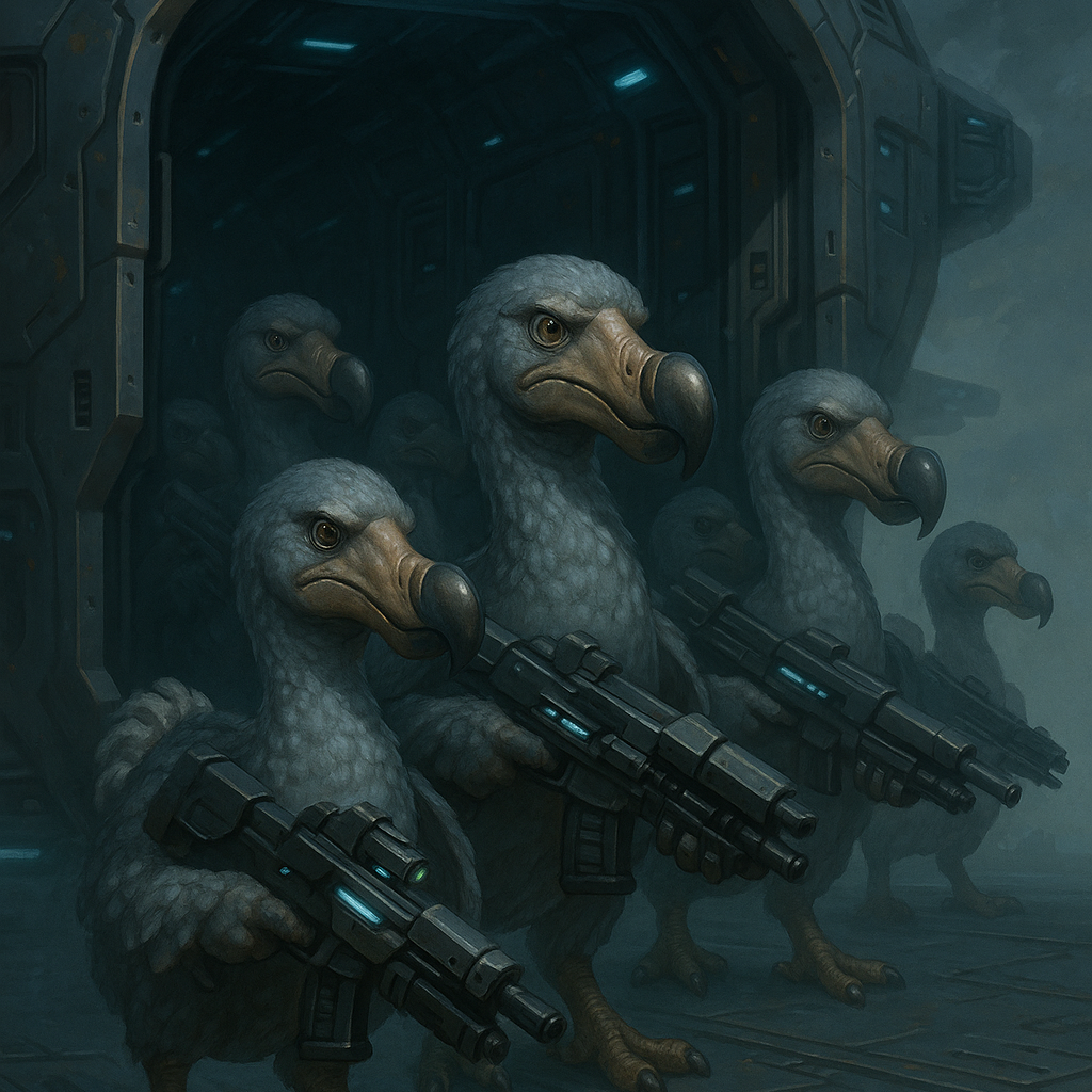 [Sound Effects: Dodo screeches, tribal drums, metal scream FX]