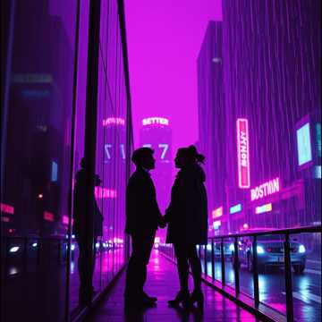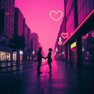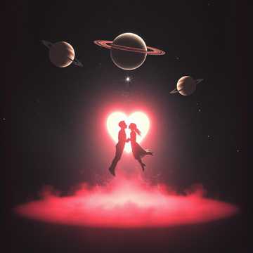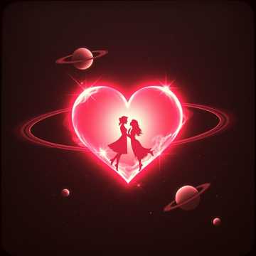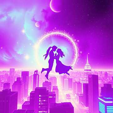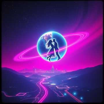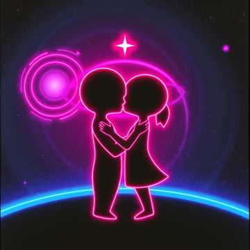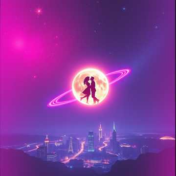 Love across neon nights, cosmic skies, and healing tears.