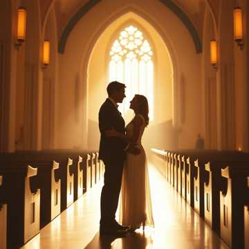 A love story written by the Words of God with graceful notes and beautiful voices as the couple to be wed stands before the world and before God who anoints this marriage with His Love, flute plays softly, uplifting, mellow, violins lifting the strings with each draw across them making them sing, electric keyboard plays light arpeggios, the sweet voices of a male/female duet, romantic, slow