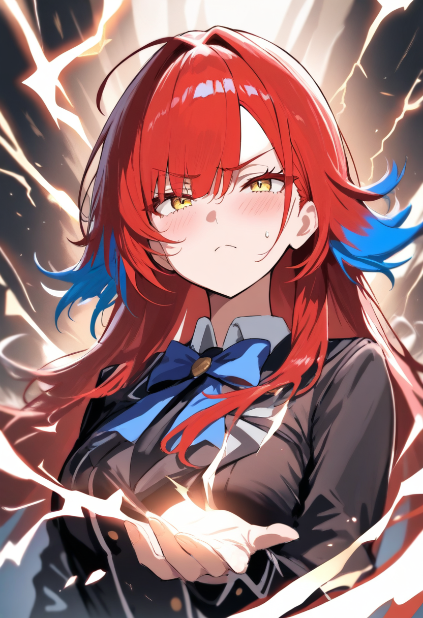Genre: High-Speed EDM Rock / Anime Battle, Tempo: 160 BPM, Key: Minor, Mood is aggressive, dark, energetic, with a confident tsundere attitude, high momentum but controlled intensity, Structure: