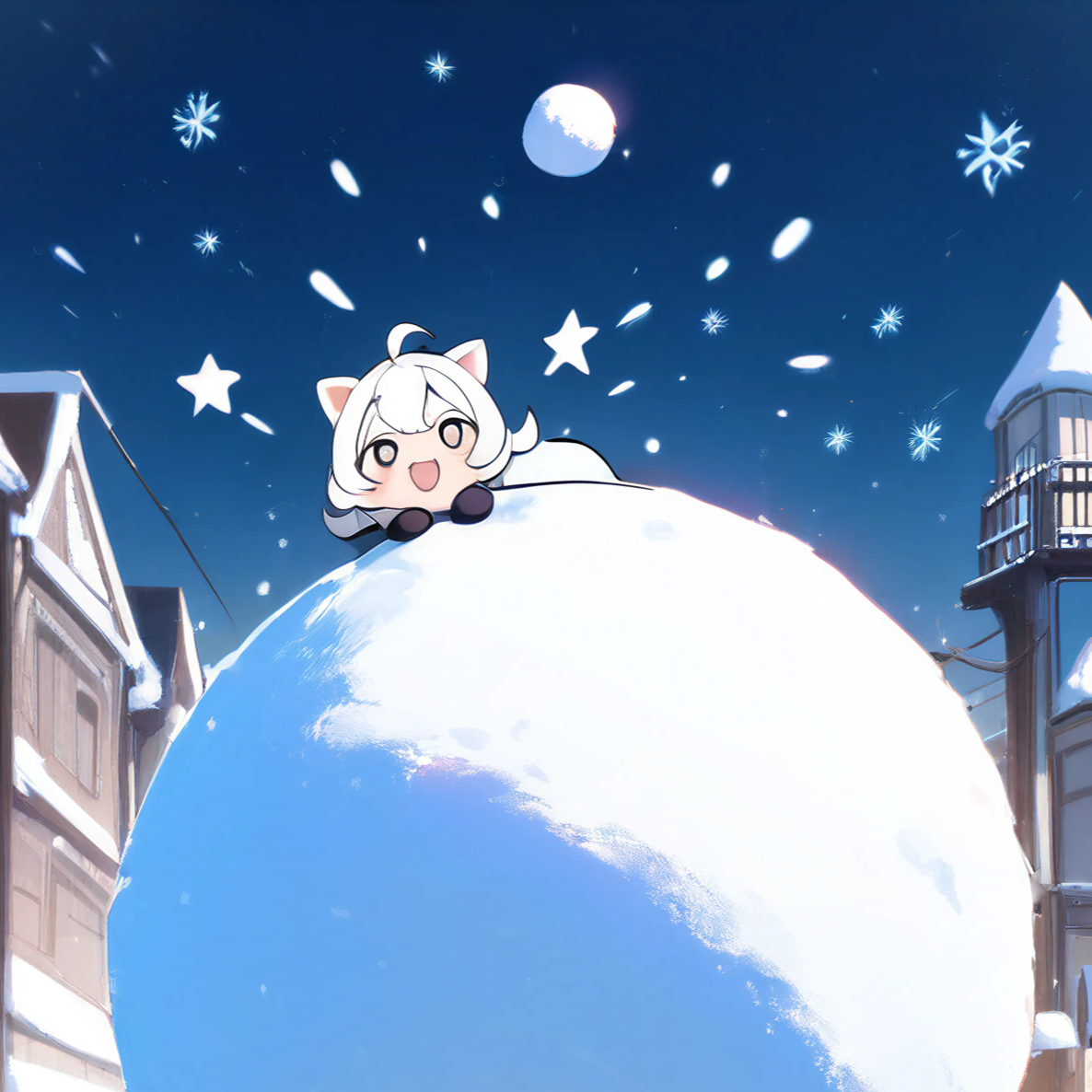 Upbeat comedic pop rock with fast tempo (160–180 BPM), bouncy rhythm, playful and cartoony energy, Bright electric guitar, punchy bass, snappy drums, brass hits, xylophone, bells and funny sound effects, Catchy chant-style chorus, call-and-response vocals, energetic female lead with expressive and slightly mischievous tone, Dynamic stops, speed-ups, and comedic breaks, Anime opening vibe, chaotic slapstick momentum, winter festive feeling, Lighthearted, colorful, humorous, no dark mood, Emphasize groove and sing-along hooks