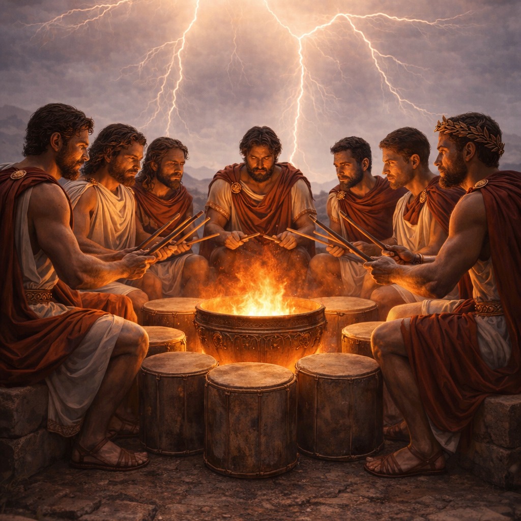 bronze age greek ancient military music, world music ancient dance, distinct theme video game, clear only-ancient instruments, simple un-layered instruments, ‑modern
