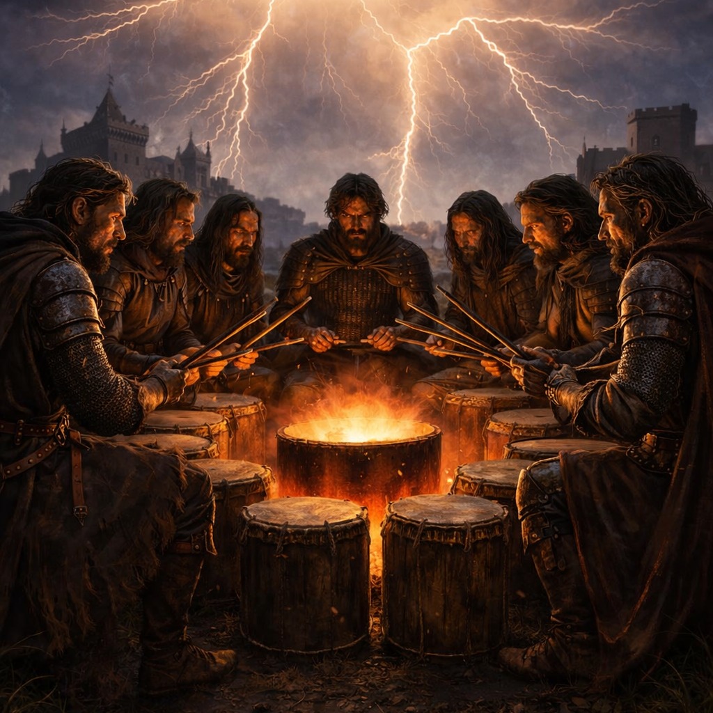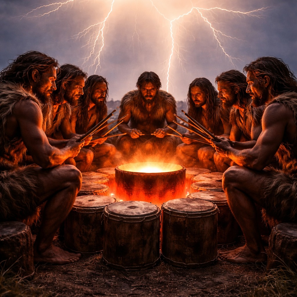 primitive simple tools-as-instruments, tribal caveman dance, distinct theme video game, clear only-ancient instruments, ‑modern