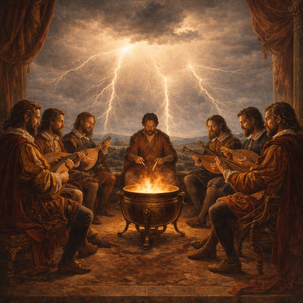 medieval music exquisite royal court dance, fast dance long improvisation, powerful separate layers, stereotypical medieval music, clear sounding medieval-instruments, ‑modern