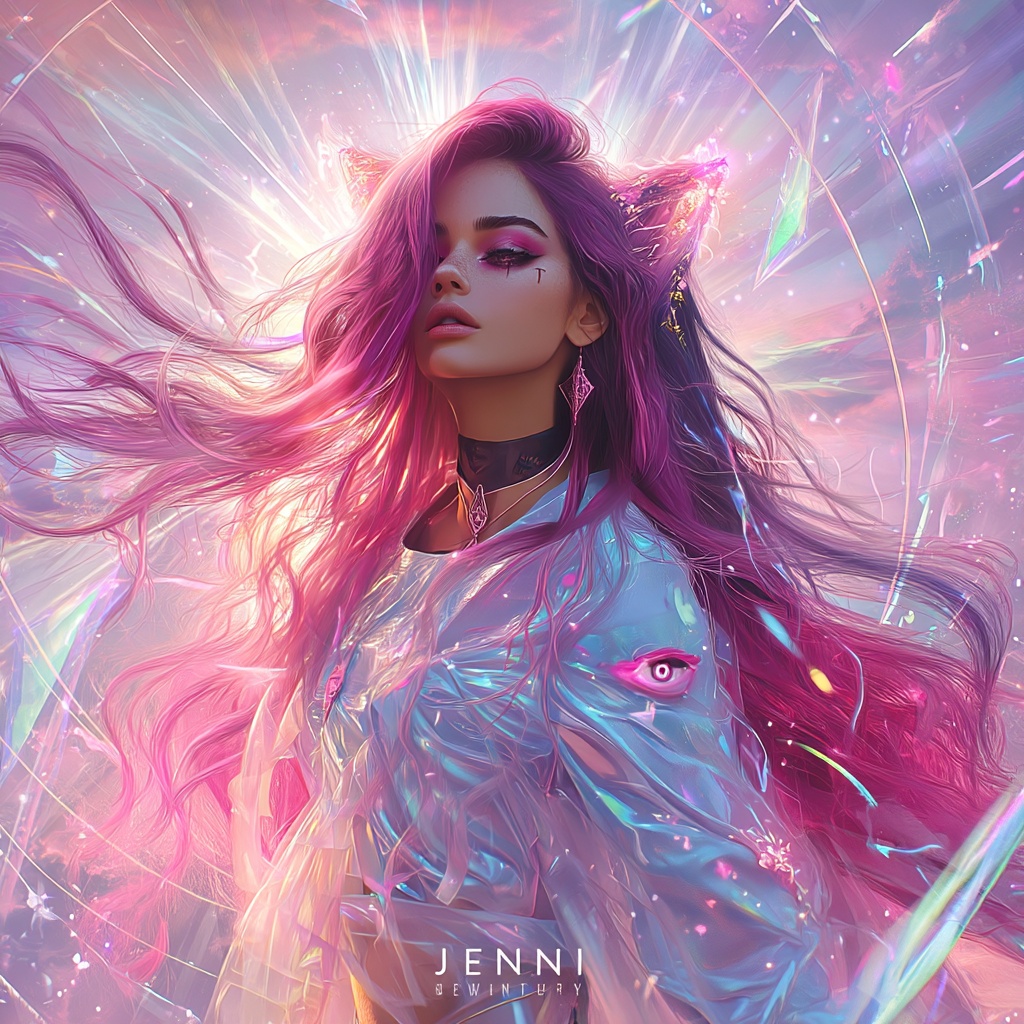 A dynamic girl group track fusing psychedelic trance and rock with hardstyle and EDM elements, Begins with natural female harmonies over swirling synths and electric guitar textures, reinforced by a boosted, rolling bassline, Drops feature punchy hardstyle kicks, layered vocal effects, and intricate psychedelic guitar riffs, creating an intense, genre-blending soundscape