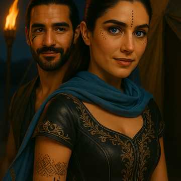 oriental progressive metal with energetic syncopated violin intro iwith arabesque feel, [powerful and soaring male vocal with subtle melisma], epic and majestic feel, [mastering clean and crisp], Use of Darkbukah and Duduk