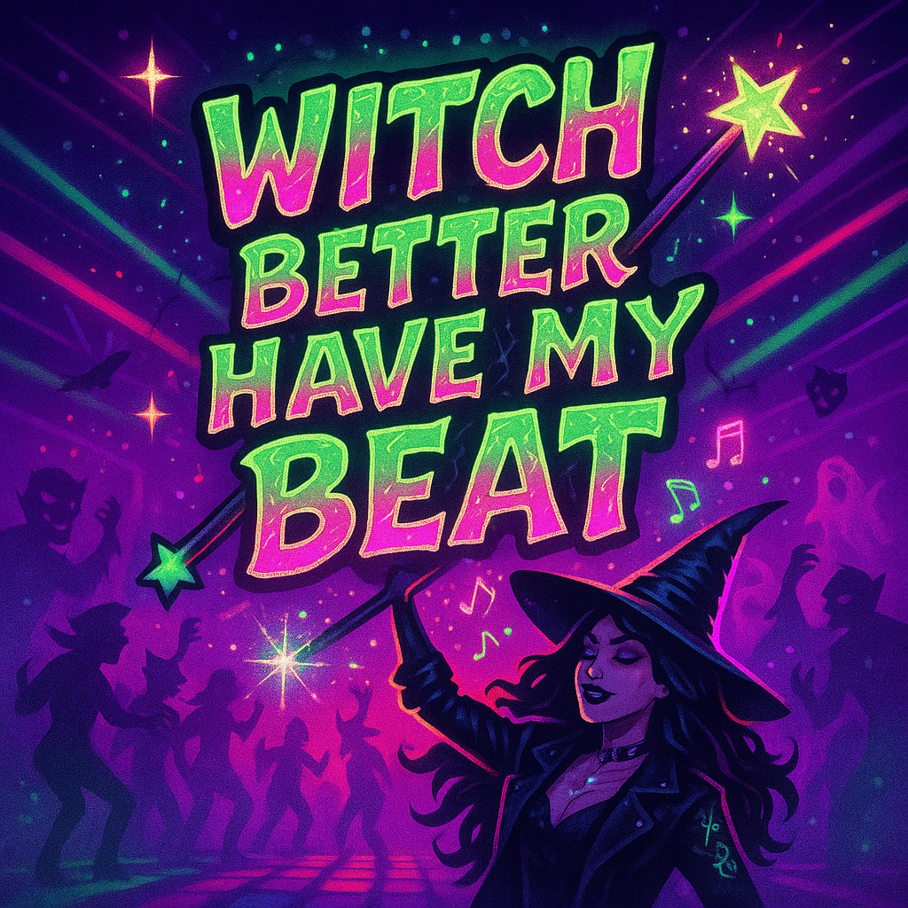 An energetic K-pop monster dance anthem titled “Witch Better Have My Beat” featuring fierce female vocals in anime style, The instrumental is driven by groovy trombones, stomping rhythms, loud snare hits, clap loops, and fiery Latin-inspired “arriba” percussion, Includes brassy breakdowns, spell-chanted pre-choruses, and punchy drum rolls, The vocals are playful, commanding, and witch-themed with a pop diva attitude — like a magical cheer captain hexing the dancefloor, The arrangement blends pop charm with monster mischief and marching band swagger, perfect for a supernatural K-pop showcase, All lyrics are in English