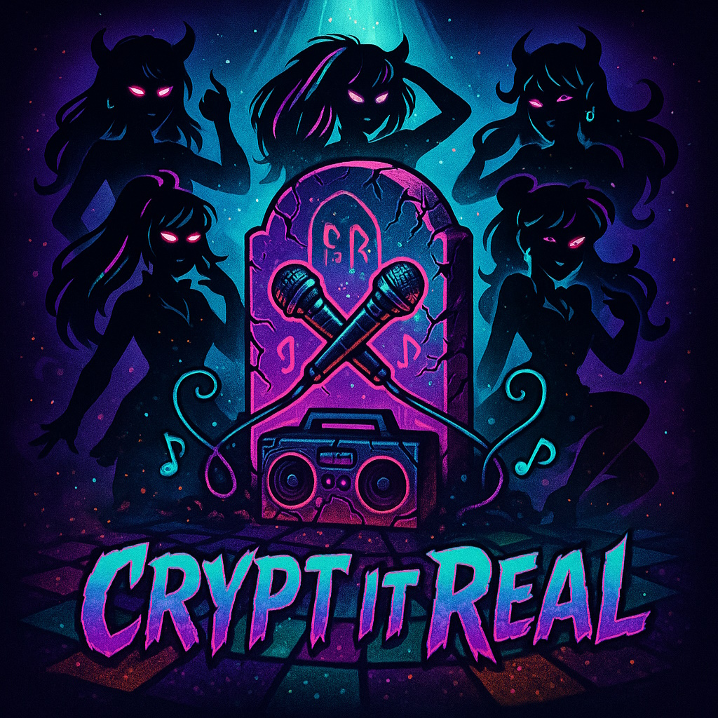 A high-energy K-pop dance groove track with dark, mystical flair, Female vocals lead the song with a sultry yet playful tone, layered over a deep bass groove, eerie synth textures, and hypnotic club beats, Features whispered vocals in the intro, groovy house rhythms with trap elements in the verses, and explosive chorus drops with layered harmonies, Include supernatural sound effects like ghostly echoes, distant howls, and subtle rattling chains in the background, Use punchy drums, rhythmic claps, and atmospheric pads that build tension before each drop, The bridge should soften briefly with shimmering synths and harmonized vocals before a bold dance break filled with stuttering beats and growling bass, Think underground rave six feet deep, rising into a moonlit monster dance party, Tempo: 125–130 BPM, Mood: darkly glamorous, mysterious, powerful