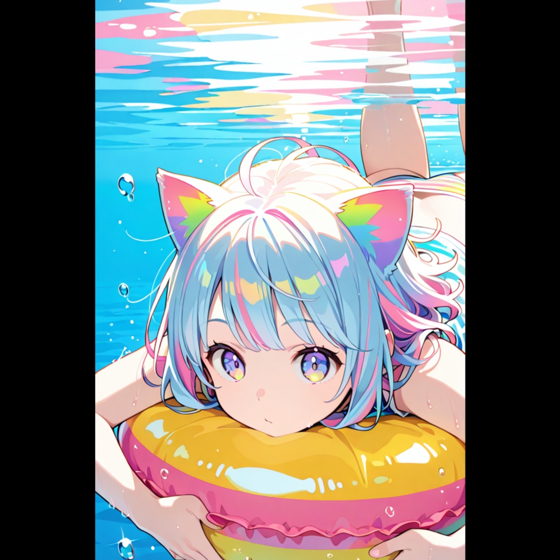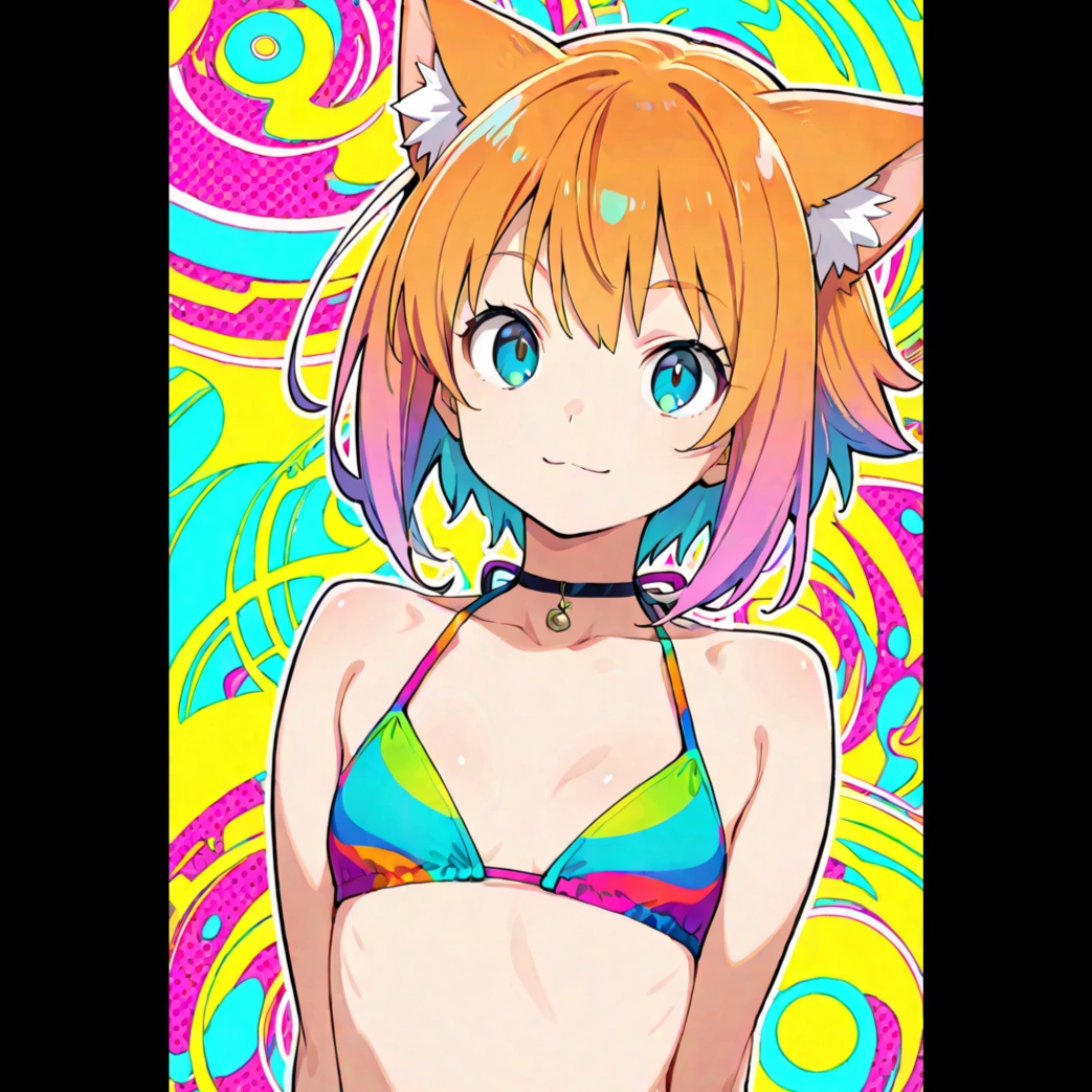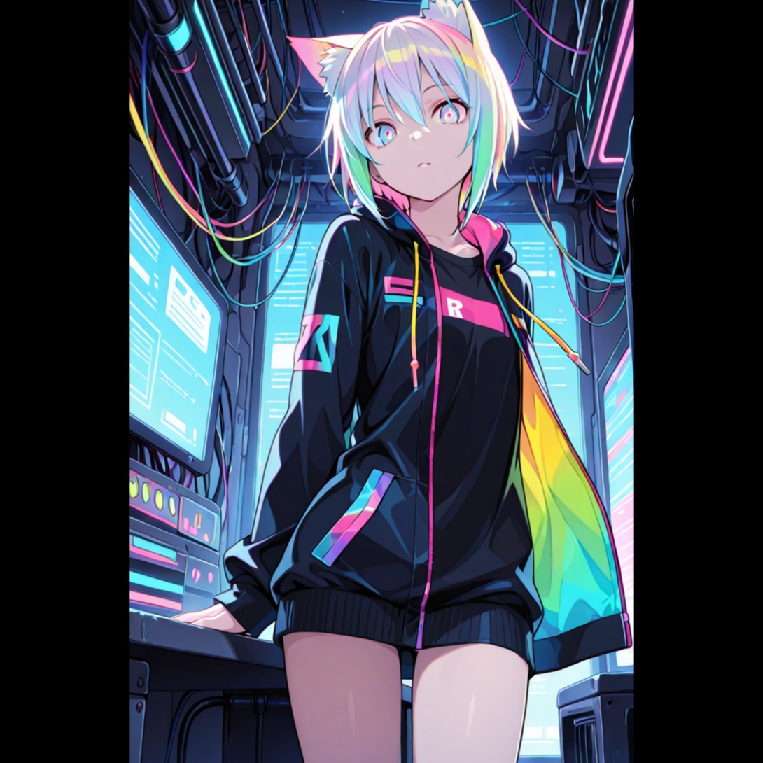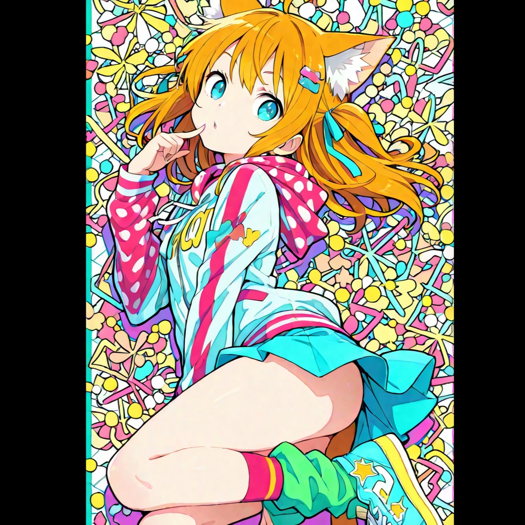 Happy Hardcore, High-energy Dance, Kawaii Eurodance, fast-paced synth pop, driving synth riff, melodic, clear female vocal, cute, energetic, fun, upbeat, bpm170, ‑kick, ‑cymbals, ‑anisong