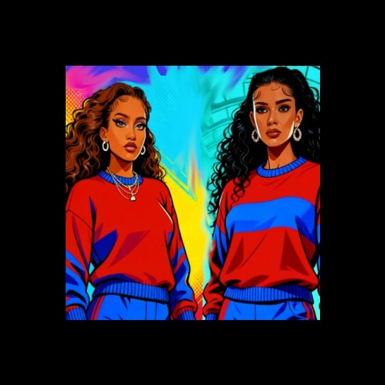 Launching with kinetic, interlocking gnawa rhythms and urgent steel drums, the track’s deep bass anchors rapid-fire afro beats, Layers of lush synths build cinematic tension, Two contrasting Black female vocalists—one raw and bluesy, one bold and rock-powered—exchange fierce duets and harmonies, erupting in emotional bursts, Echo loops and background phrases enrich the rhythmic tapestry, The arrangement swells with dynamic interplay, escalating percussion, and dense melodic stacks, driving a bold, fast-paced dancehall groove