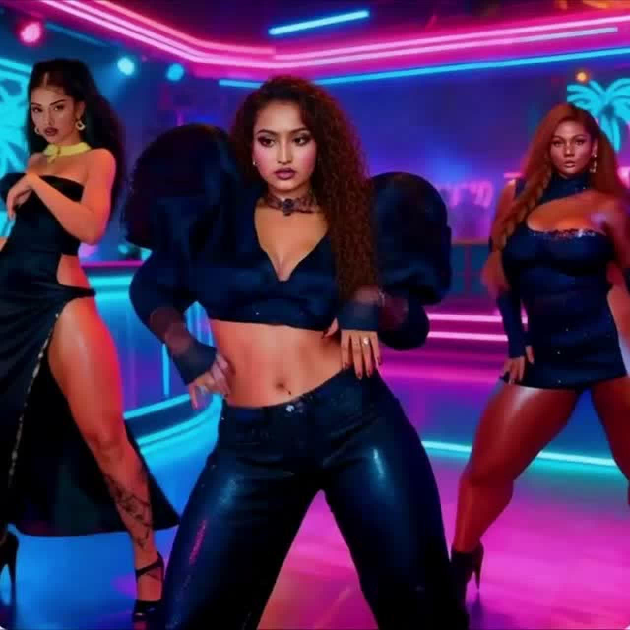 Miami bass drives the groove with booming 808 kicks, crisp hi-hats, and syncopated percussion, Twin vocals—layered harmonies and playful call-and-response—give contrast and depth, centered around commanding black female lead vocals, Dub effects drop in: echoed snippets, filtered synths, and vocal drops energize the breakdowns