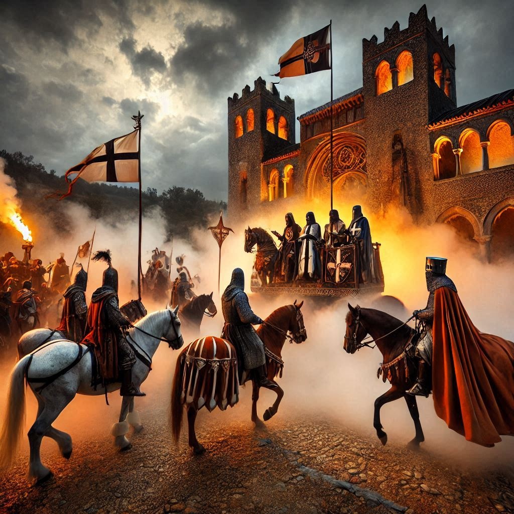 videogame, dream pop, syntwave, melódica, acción, two trumpets only in the chorus, estribillo x 2, ritmico, magic, medieval, violin