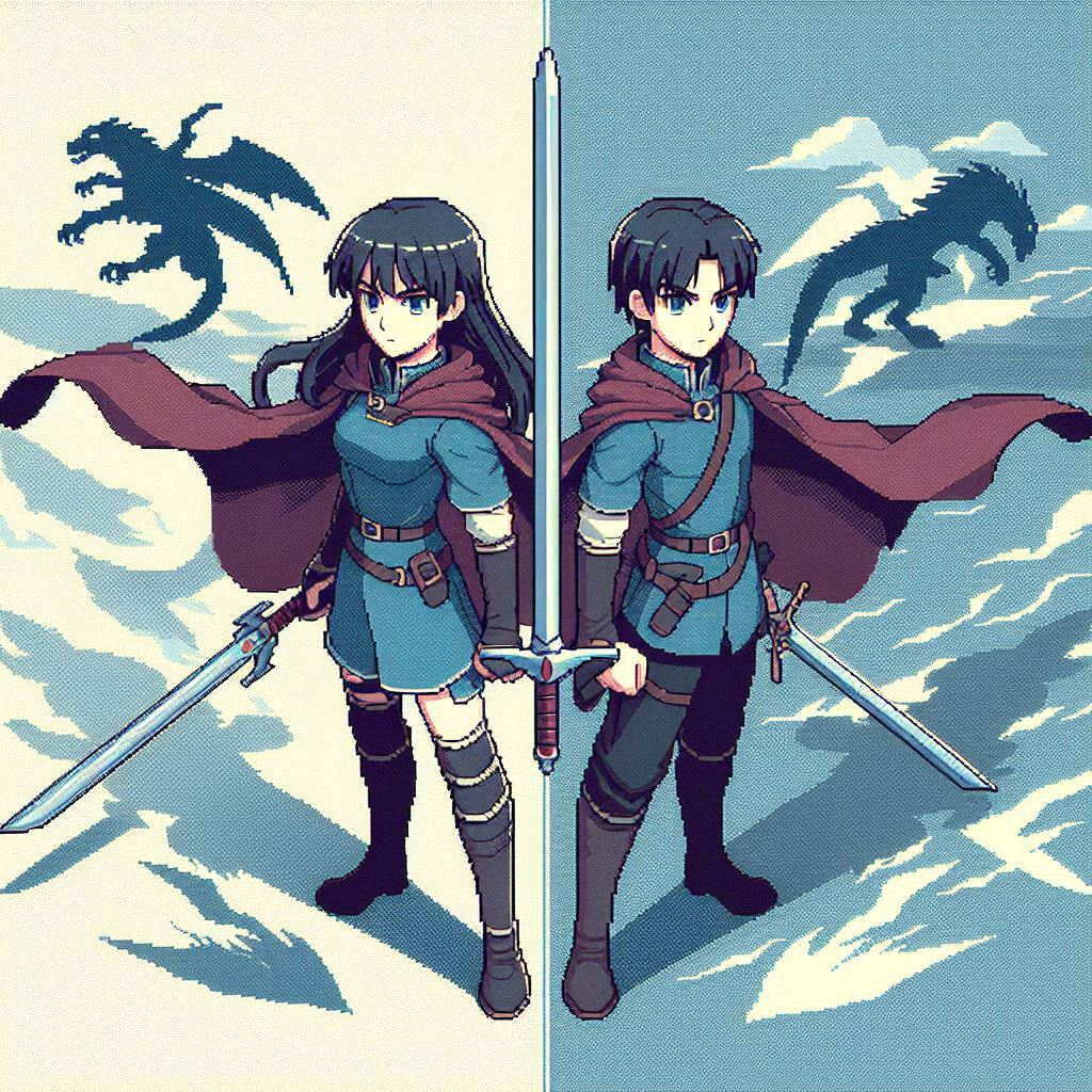 16 bits, battle rpg, melódica, acción, fight, two trumpets only in the chorus, chorus x 2, tactics, dream pop, syntwave, ritmico, magic, medieval, violin, guitar electric