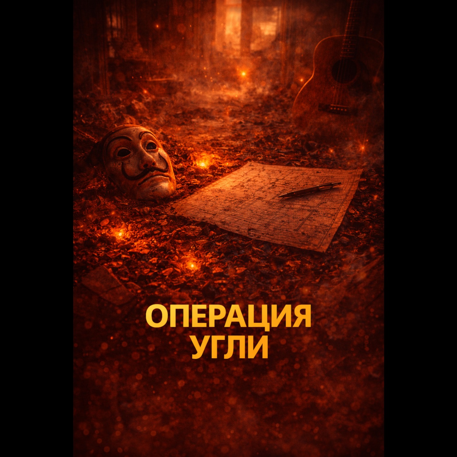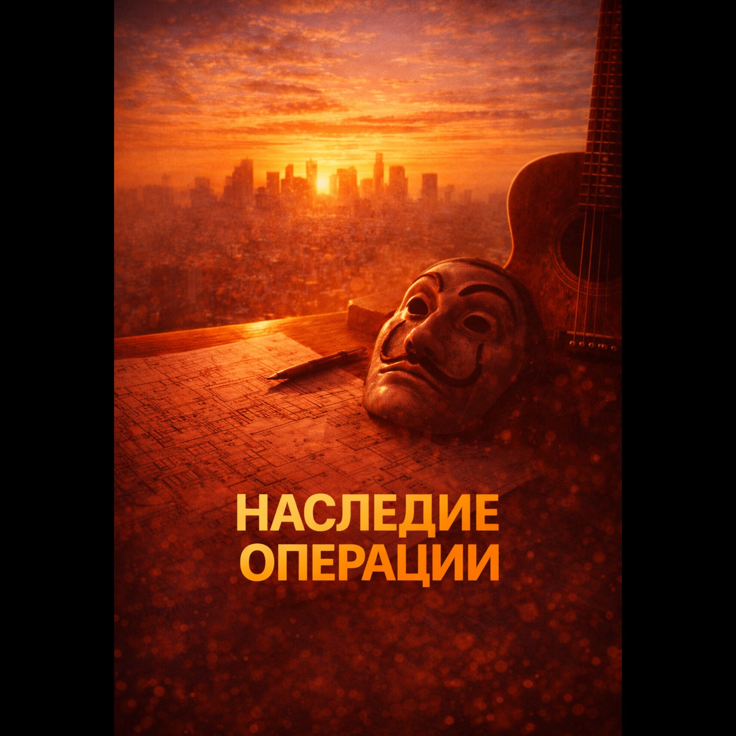 Create an instrumental soundtrack inspired by the Spanish series "La Casa de Papel" (2017–2021), The music should combine suspenseful tension, emotional drama, and rebellious energy, Use acoustic guitar, electric guitar riffs, deep bass, rhythmic percussion (snare, claps, hand drums), and dramatic string sections, Add cinematic brass for moments of intensity, and subtle electronic pulses to maintain modern heist atmosphere, The melodies should alternate between melancholic and triumphant, evoking themes of resistance, loyalty, strategy, and danger, Dynamic progression: start with quiet tension, slowly layering instruments, then rise into powerful crescendos with strong rhythm, No vocals, focus only on instrumental storytelling with cinematic depth and emotional weight