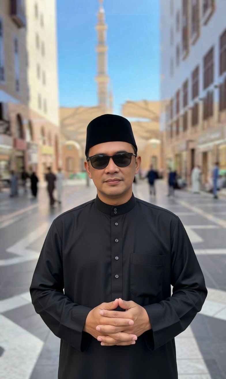 Upbeat Islamic Pop, Acoustic Guitar Strumming, Handclaps, Happy and Festive, Major Key, Bright Vocals, Modern Malay Pop rhythm, Catchy Hook, Uplifting, 115 BPM, Summer Vibes