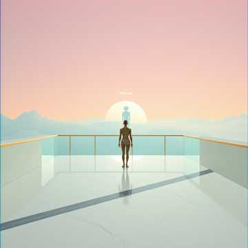 Cinematic Ambient, 60 BPM, Rising orchestral swells, shimmering harp-synths, pressurized air-hiss, distant melodic vocal hum