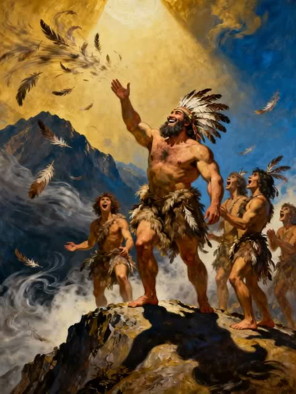 Primal, Didgeridoo, power drum, tribal rattle, Guttural chanting, deep angry vocals, Aggressive, yelling, chorus singing, echoing vocals