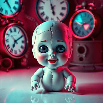 Warped ambience opens: cracked lullabies, ticking clocks, and uneasy textures, Chaos erupts with blown-out 808s, grinding basslines, glitch-torn trap drums, screaming/twisting synths, and voodoo percussion, Vocals are uncaged—pitch-shifted, glitched, haunted, looped, buried in reverb, layered with guttural whispers and corrupted nursery riffs, Drops are total system crashes, marked by stuttered silences and roaring FX—ring mod, bitcrush, speaker destruction, The song decays in ambient horror, vocals fading like a cursed lullaby