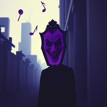 Depressive rap Horrorcore, Slow Eerie Piano, Distorted Bass, Anguished Vocals, Lo-Fi Texture, Manic Joker Laughs, Deep Voice Ad-libs, Psychedelic Trap, Lo-Fi Hip Hop, Eerie Detuned Synths, Heavy 808 Bass, Manic Flow, Dark Atmosphere, Slow Tempo, Deep Voice Ad-libs