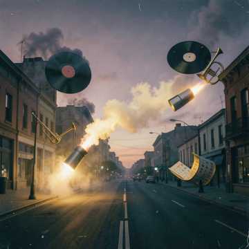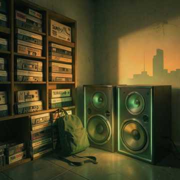 00s underground rap, boom bap groove, chopped breakbeat samples, turntable DJ cuts, horn stabs, spring reverb snare, distorted vinyl loop, tape saturation, mono bass pocket, room mic claps, crunchy drum bus, sampled shout hooks, swung 16th hats, block party energy, midtempo bounce, grimy tension, claustrophobic mix, dusty sampler grit, cinematic brass riffs