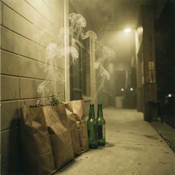 stoner rap rock, 92 BPM, swung backbeat, detuned baritone guitars, fuzz bass octaves, crackling snare, wah guitar stabs, Hammond organ riffs, tape saturation, spring reverb, dusty mono mix, smoke-soaked swagger, blockparty grit, head-nod groove, horn hook breaks