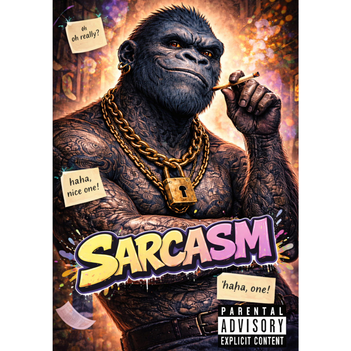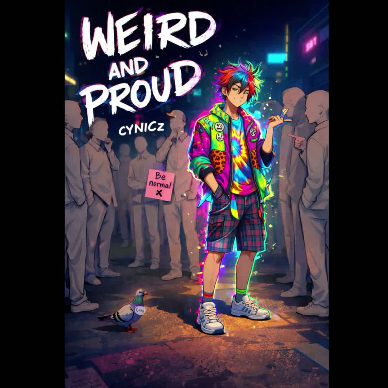 Lo fi textures ride atop raw, driving drum breaks and distorted bass, Gritty guitar riffs slash through snarky edits, while occasional punk shout-backs pepper the verses, Tape hiss and glitch add grain, giving way to a stripped, half-time bridge before crashing into a raucous finale