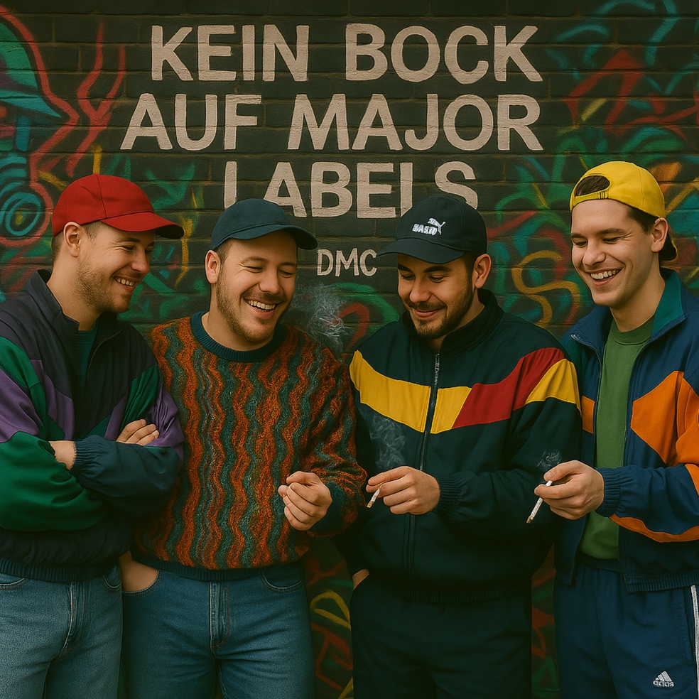 Erstelle einen Song, der eine energiegeladene Mischung aus Indie-Rock, Punk-Rock und Hip-Hop ist, Die Musik soll mitreißende Gitarrenriffs, treibende Beats und einen eingängigen, mitsingfähigen Refrain haben, Die Texte sind ironisch, sarkastisch und gesellschaftskritisch, mit Fokus auf Alltagsthemen, Jugendkultur oder die Absurditäten des Lebens in Deutschland – gerne mit einem Augenzwinkern und Bezug zur (ost)deutschen Lebenswelt, Der Vibe ist frech, lässig und authentisch, mit einer rohen, unperfekten Energie, Der Gesang wechselt zwischen melodischem Singen und rap-ähnlichen Parts, Optional: Füge eine Retro-Stimmung hinzu, die an 80er/90er-Jahre-Ostalgie erinnert, Genre: Indie-Rock, Punk-Rock, Hip-Hop